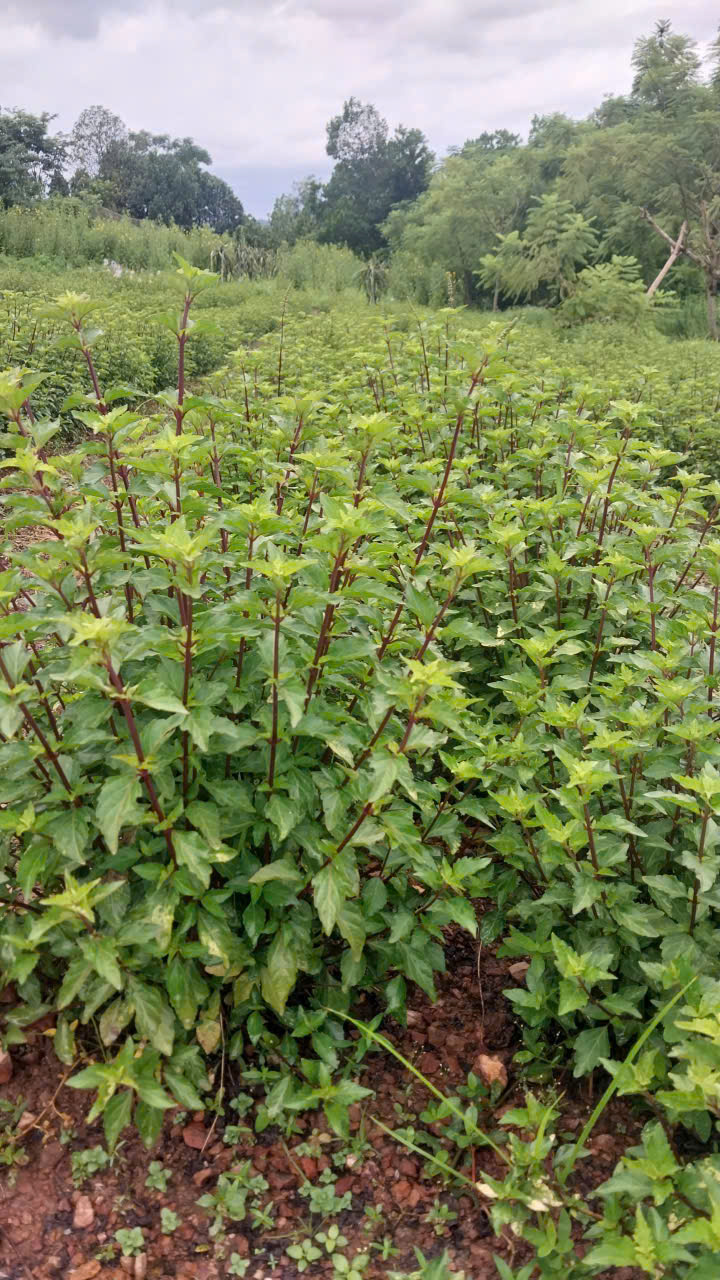 49 | Kiểm tra đồng ruộng - Cây râu mèo sau một khoảng thời gian với thời tiết có mưa và độ ẩm cao thích hợp, là điều kiện thuận lợi để cây sinh trưởng và phát triển thân lá rất mạnh. Hình ảnh cây râu mèo tại khu vực trồng sau đạt 5 tháng tuổi, cây khỏe, lá xanh tốt, không bị sâu bệnh. |