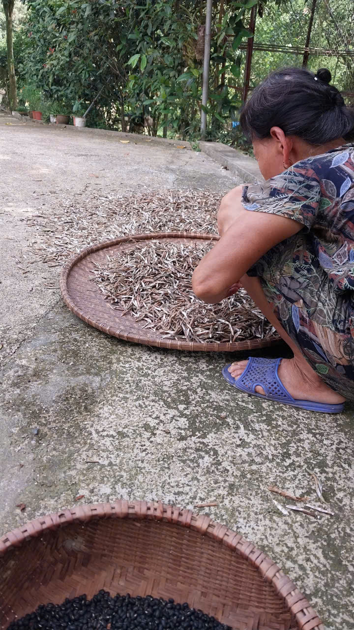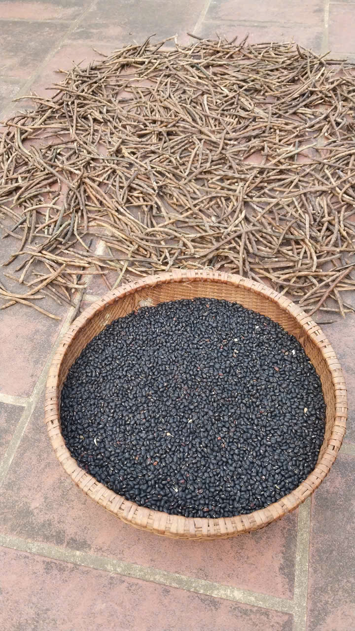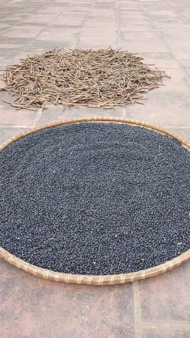 21 | Phơi sấy thủ công - Tiếp tục thu hoạch và phơi sấy thủ công hạt đỗ đen xanh lòng bản địa đã tách khỏi vỏ hạt trên nong/nia. Tổng thu hoạch đợt 3 sau phơi khô đạt 140kg đỗ đen. |
