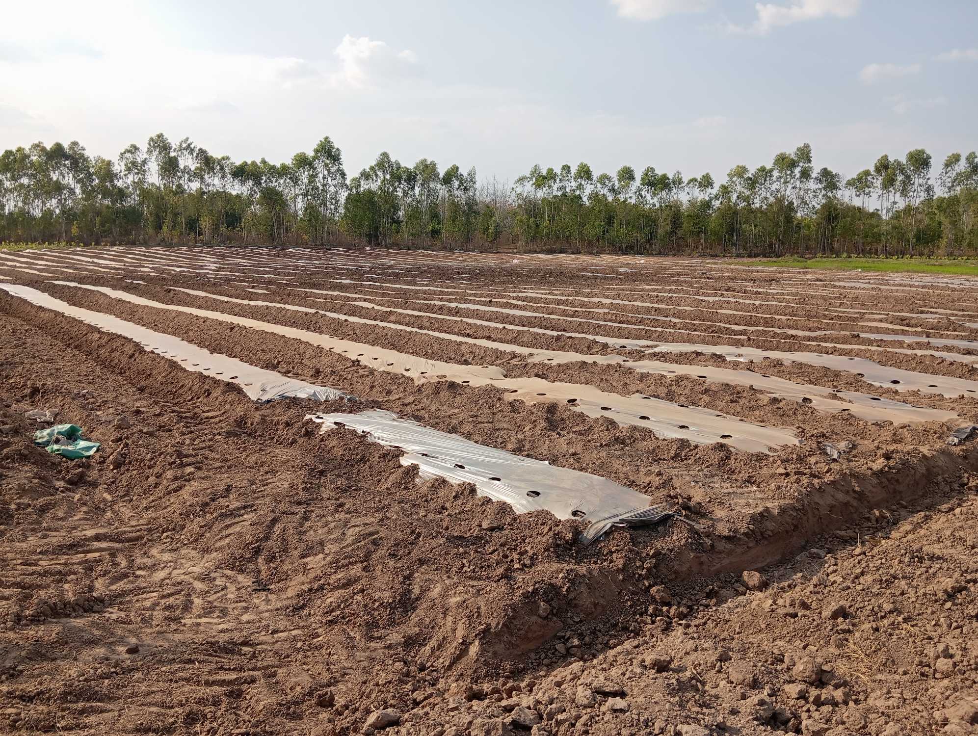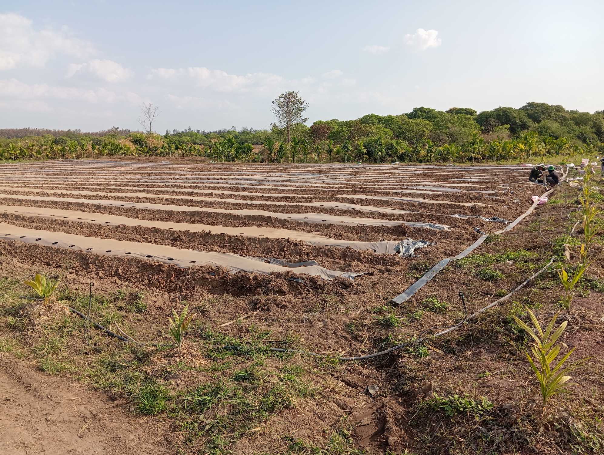 - +Lên luống + Trải bạt, ống nhỏ giọt