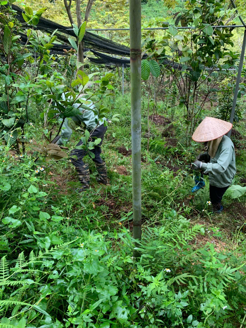 25-07-2024 12:07:00 | Làm cỏ | Tiến hành làm cỏ kết hợp xới xáo cho một số khu vực của vườn trà. Dọn sạch cỏ dại, thực bì quanh gốc, đường kính 1m. | Hoàn thành | |