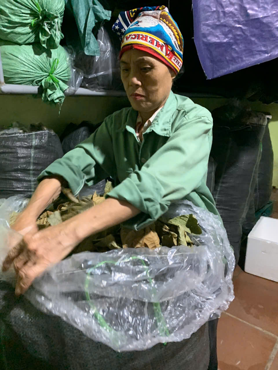 18-09-2025 12:09:00 | Nhà kho bảo quản | Nhập kho tổng khối lượng thu hoạch lá Trà hoa vàng sau các đợt thu hoạch là: 75 (Kg). Lá trà được đóng trong bao nilon trong suốt và đựng trong bao tải dứa rồi xếp lên giá riêng biệt trong kho chứa dược liệu. | Hoàn thành | |