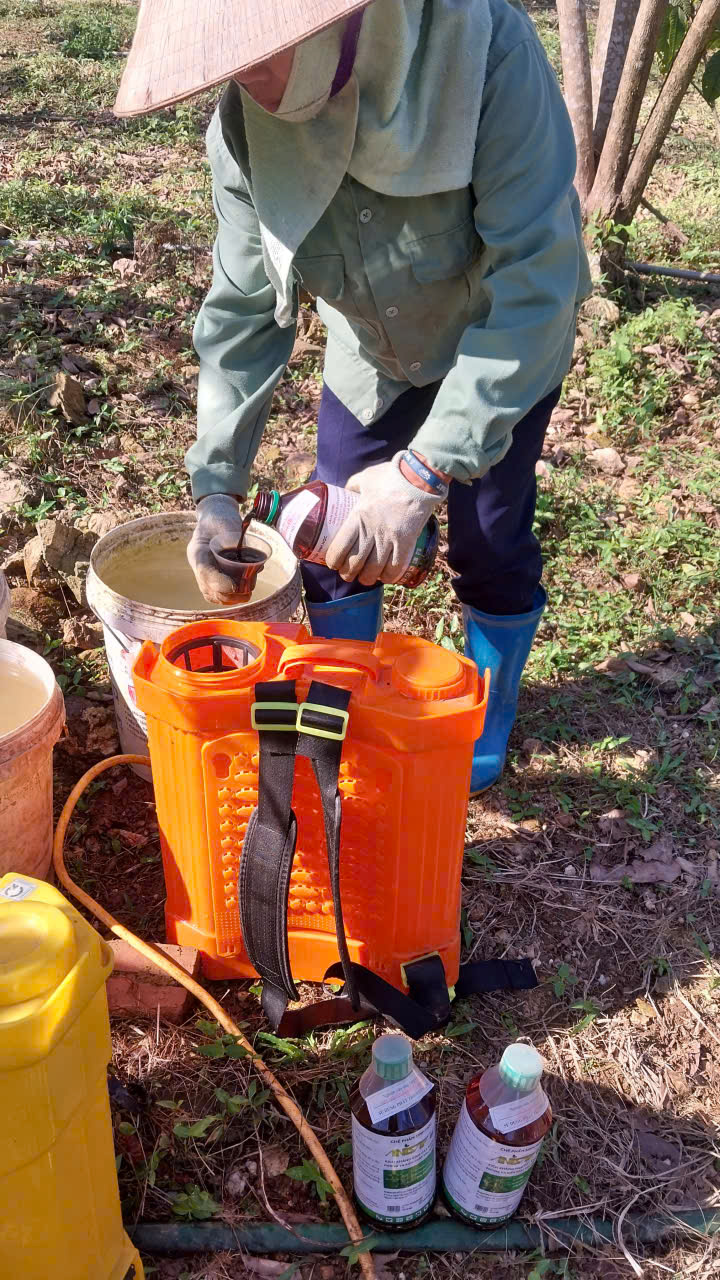 | 20-11-2025 12:11:00 | Bảo vệ thực vật | Tiến hành phun chế phẩm sinh học trừ sâu thảo mộc kết hợp Anisaf 01, 02 và 03 cho cây trà. Cách dùng: pha tỉ lệ 230ml mỗi loại chế phẩm 01, 02 vào chung một bình phun 20l, do mùa hanh khô, cần phun tăng lượng thuốc 01 và 02 để phòng trị. Tiến hành pha và phun cho toàn bộ khu vực. Tổng 13 bình phun. . | Hoàn thành | |