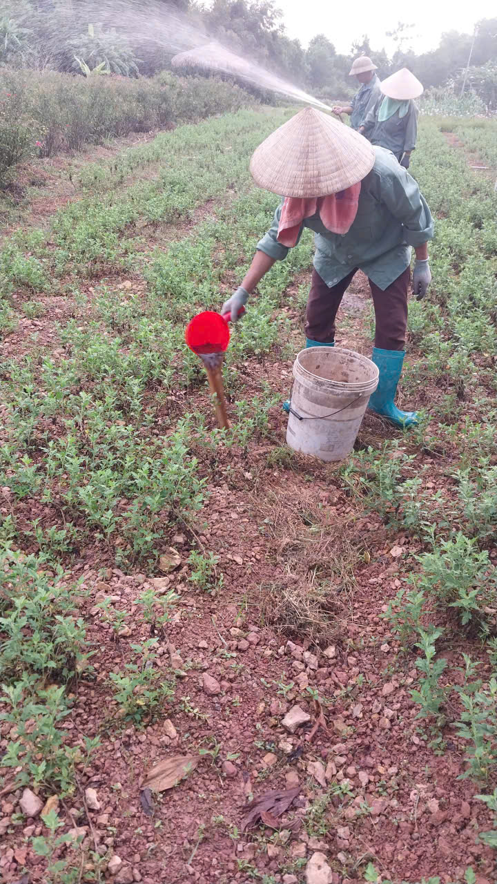 09-08-2025 12:08:00 | Bón Thúc | Tiến hành bón thúc cho cây bạch cúc chi, sử dụng phân Lucavi dạng dung dịch. Cách bón: tưới trực tiếp bằng dung dịch đậm đặc quanh gốc cây, mỗi khóm cây 30 - 50ml sau đó tưới nước bằng hệ thống tưới thủ công. Tổng dung tích phân sử dụng: 30 lít | Hoàn thành | |